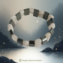 Stilinizde abartıdan uzak, yalın ama etkileyici bir duruş arıyorsanız bu bileklik tam size göre. Hovlit taşının pürüzsüz dokusu ve üzerindeki doğal gri damarlar, sabrı ve sükuneti simgelerken; tasarımın omurgasını oluşturan Hematit blokları, bu yumuşak geçişe güçlü ve modern bir kontrast kazandırır. Hem spor hem de şık kombinlerinizde dengeleyici bir unsur olarak kullanabileceğiniz zamansız bir parça.