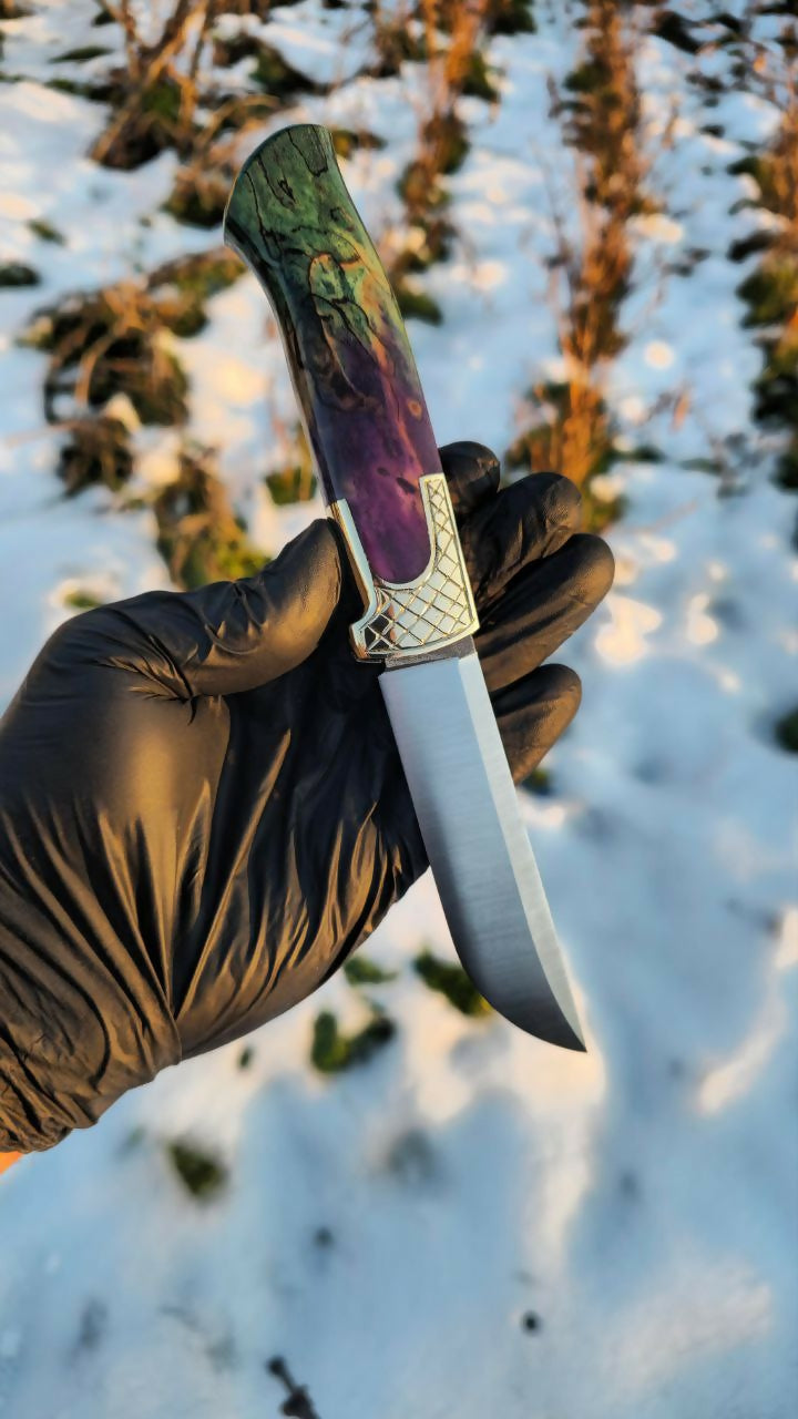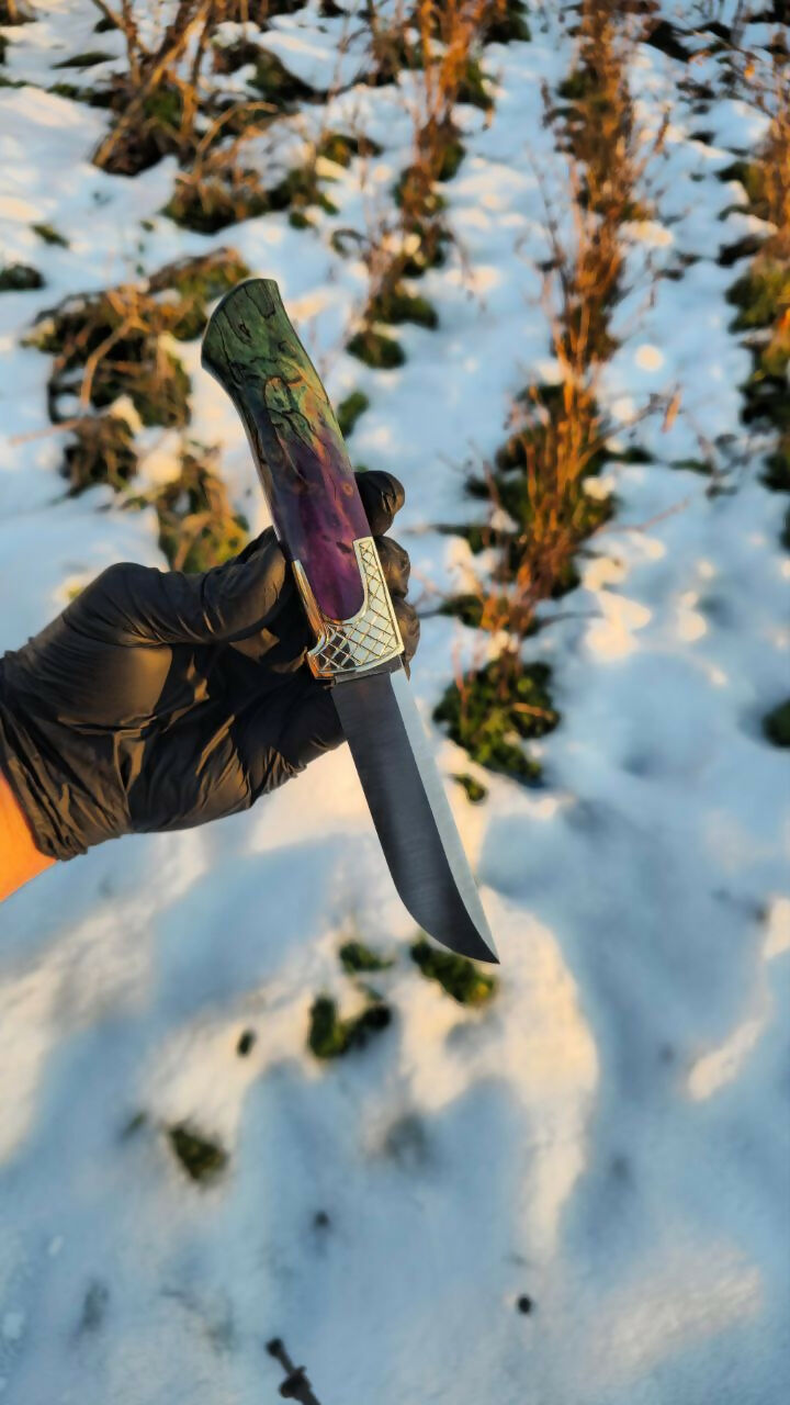 Özel İşçilikli Stabilize Ahşap Kabza ve Şam Çeliği Bıçak