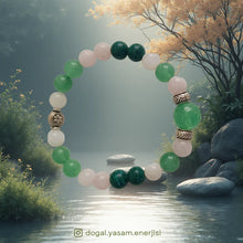 Derin yeşilden soft pembeye uzanan bu renk armonisi; Malahit'in dönüştürücü gücünü, Pembe Kuvars'ın şefkatini, Aventurin'in şansını ve Ay Taşı'nın mistik pırıltısını tek bir çizgide buluşturuyor. Hem görsel bir şölen sunan hem de ruhunuza "yeni bir başlangıç" hissi veren bu bileklik, stilinize sofistike ve huzurlu bir dokunuş katmak için tasarlandı.